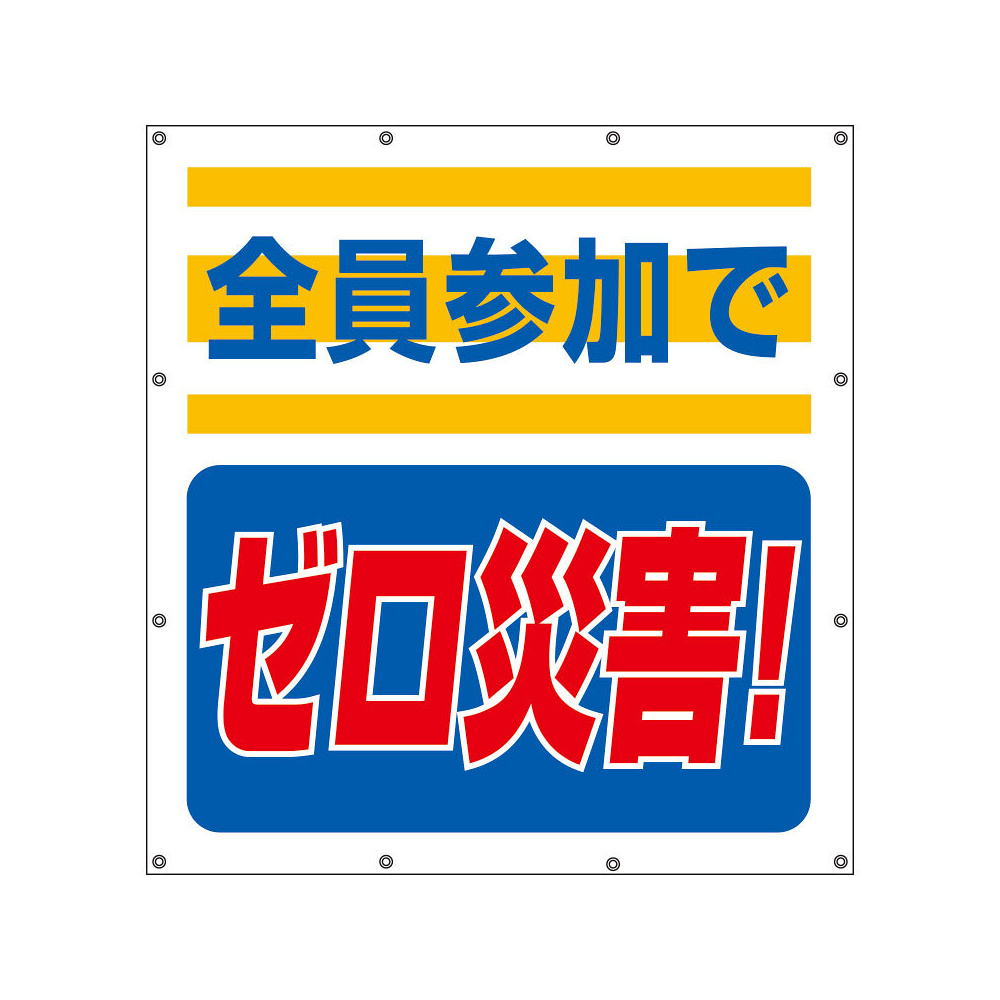 商品説明:スーパーシート(スローガン) 900×850 全員参加でゼロ災害! (355-60)