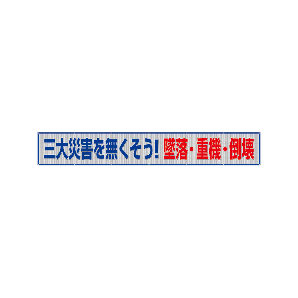 商品説明:風抜けメッシュ標識(横断幕) 三大災害をなくそう!墜落・重機・倒壊 (352-46)