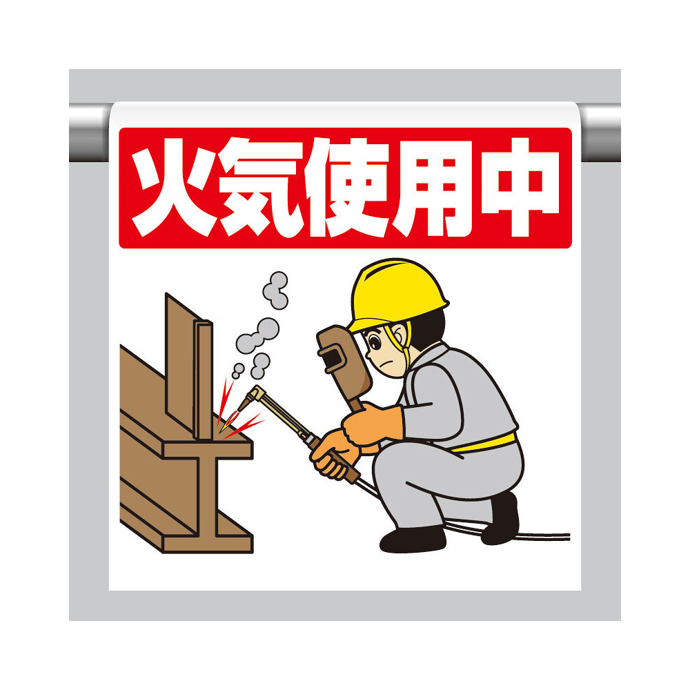 ワンタッチ取付標識(イラスト) 火気使用中 (340-127)