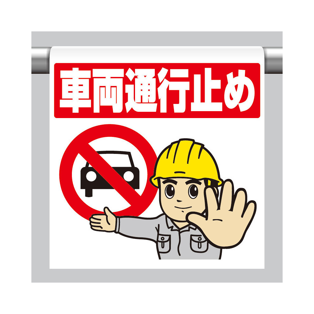 商品説明:ワンタッチ取付標識(イラスト) 車両通行止め (340-130)