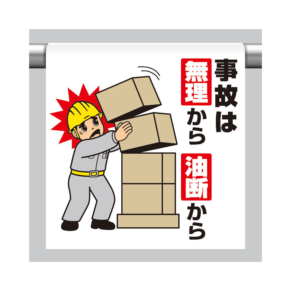 商品説明:ワンタッチ取付標識(イラスト) 事故は無理から油断から (340-133)