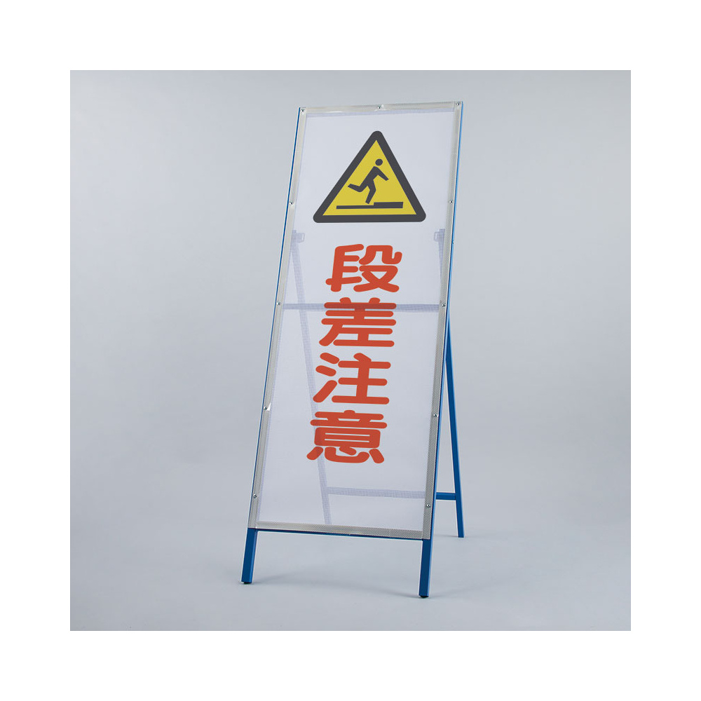 メッシュ式工事用鉄枠看板 段差注意 (396-73)
