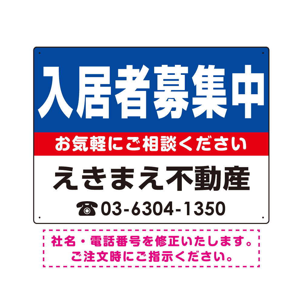 商品説明:入居者募集中 ブルー デザインB オリジナル プレート看板 W600×H450 エコユニボード