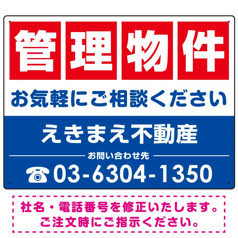 - デザイン上の「社名」と「電話番号」はご希望の内容に修正してから印刷・製作・お届けいたします。