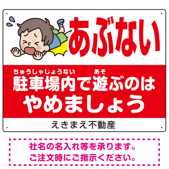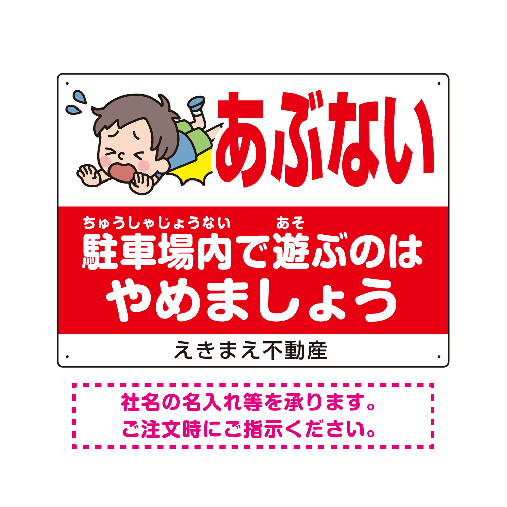 あぶない 駐車場内で遊ぶのはやめましょう デザインB オリジナル プレート看板 W600×H450 エコユニボード