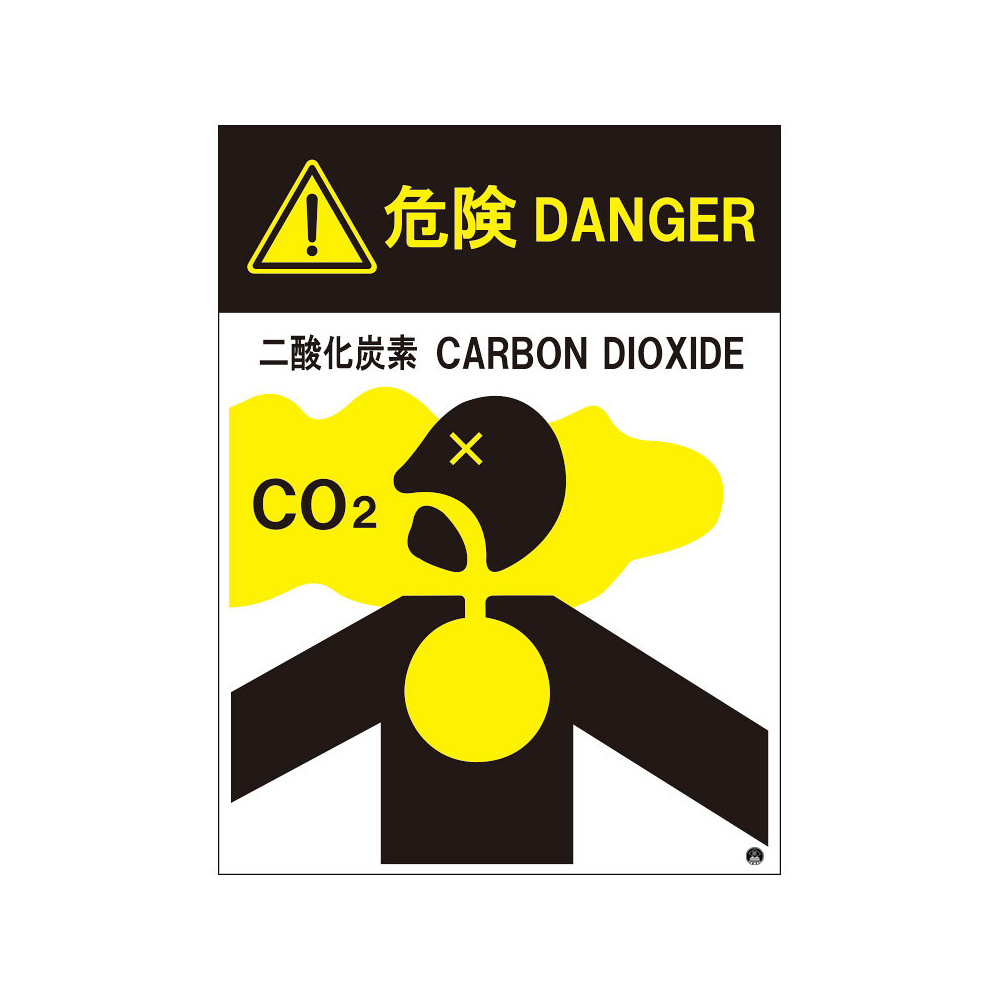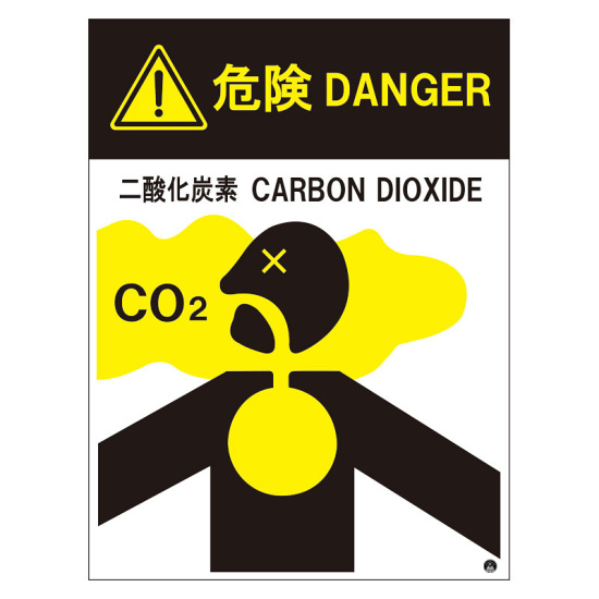 二酸化炭素消火設備標識 日本消防標識工業会推奨シール付 H400×W300 イラスト・危険 二酸化炭素 (809-401)
