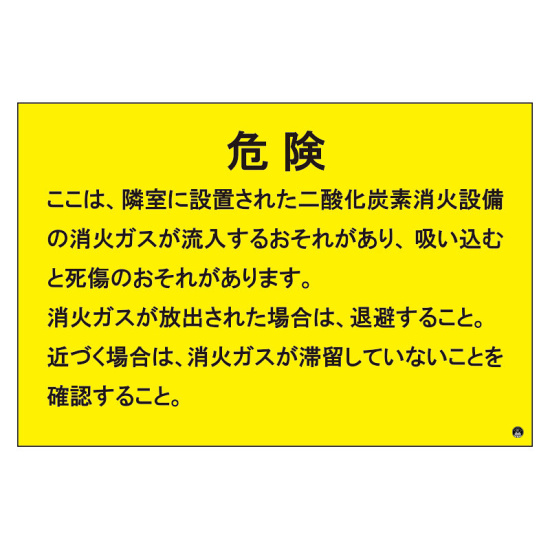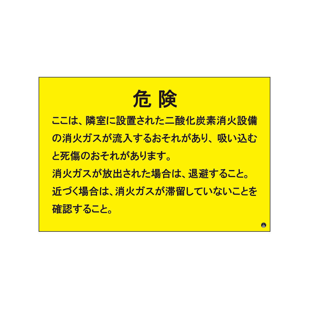 二酸化炭素消火設備標識 日本消防標識工業会推奨シール付 H200×W300 隣室に二酸化炭素消化設備が設置 (809-403)