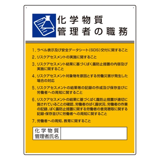 化学物質管理者の職務標識 600×450 エコユニボード(穴4スミ) の商品詳細