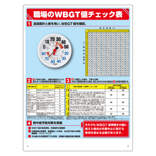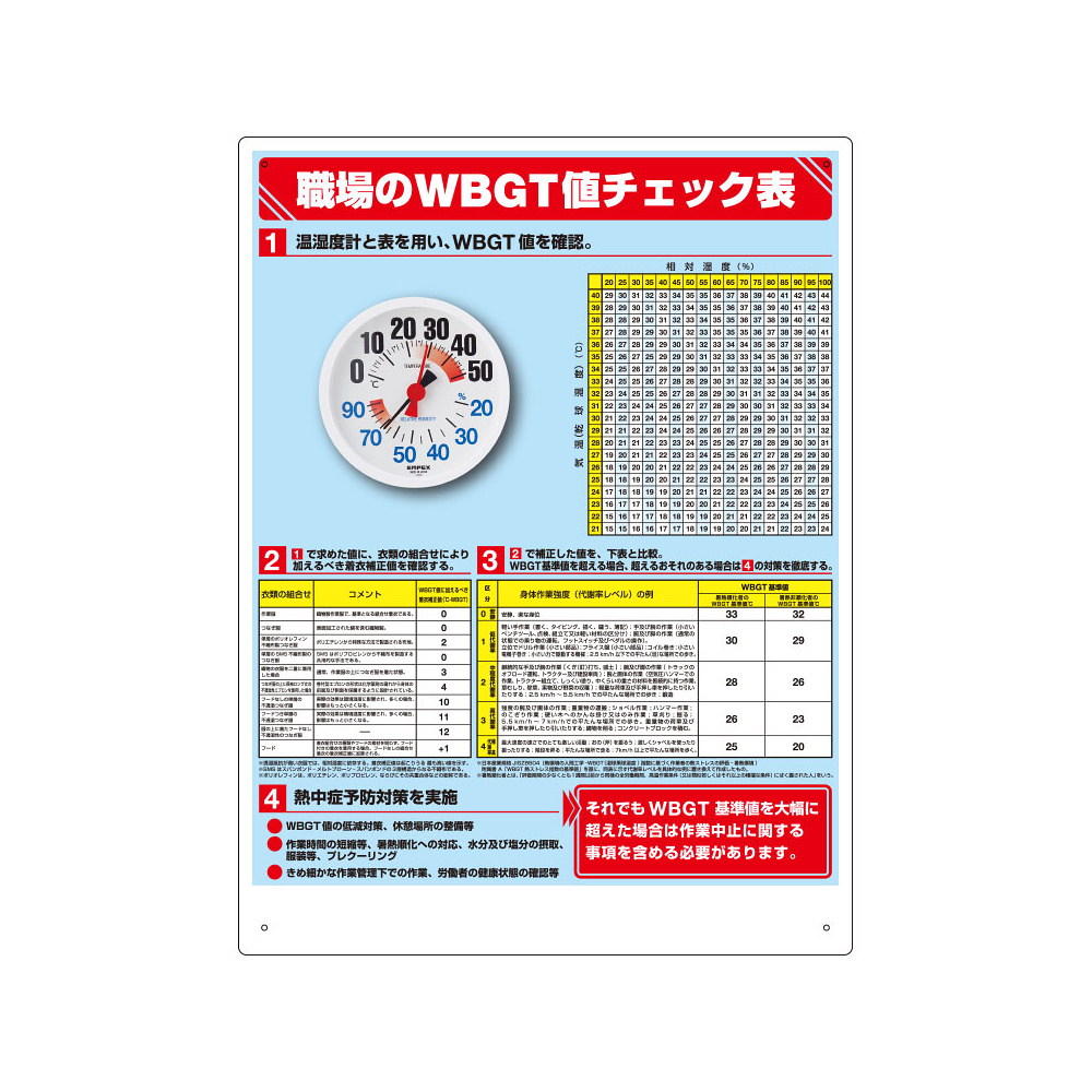 商品説明:WBGT値チェック表 温湿度計付 (HO-515A)