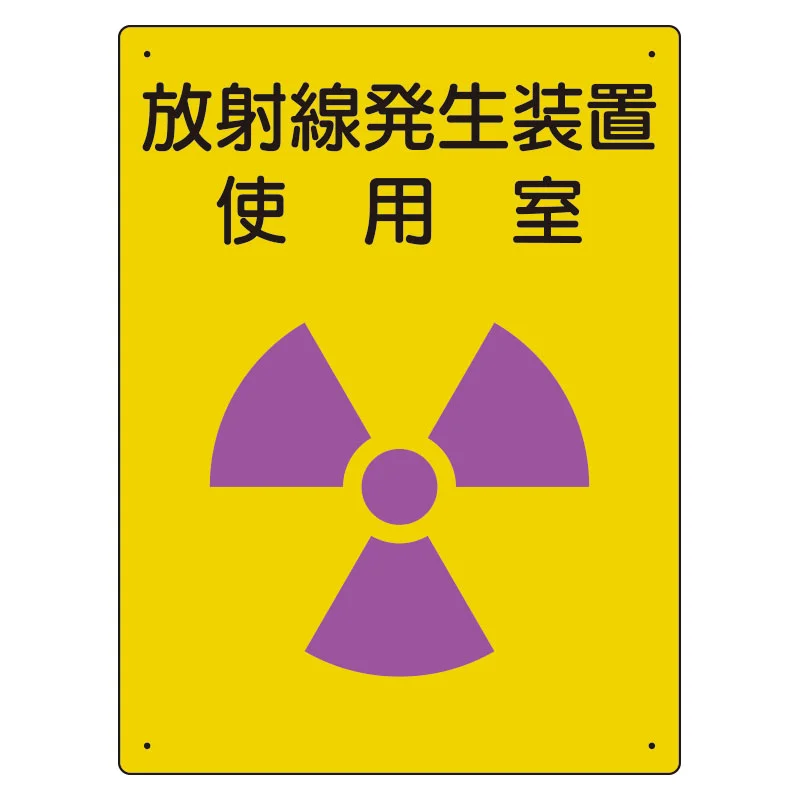 - 放射能マーク入りで危険性も伝えやすく、装置室の入口表示や管理表示として役立ちます。