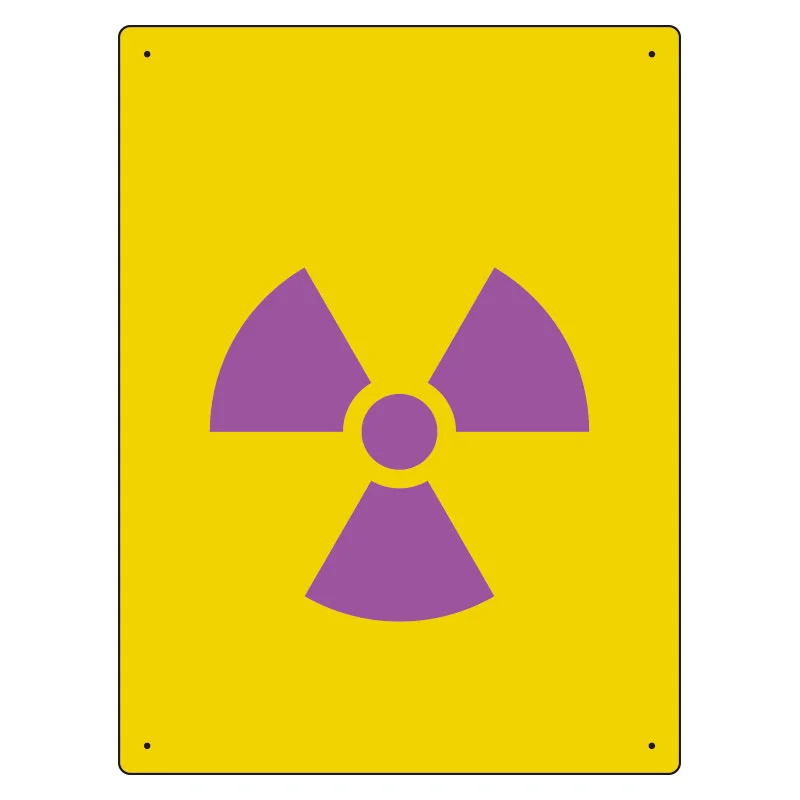 - 文字を入れずに放射能の危険をシンプルに示したい場面に適した標識です。
