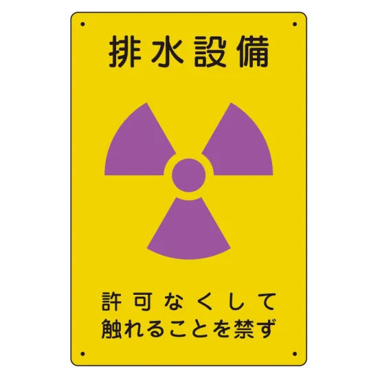 - 放射線関連の排水設備であることを、小さめサイズで明確に表示したい場面に適した標識です。