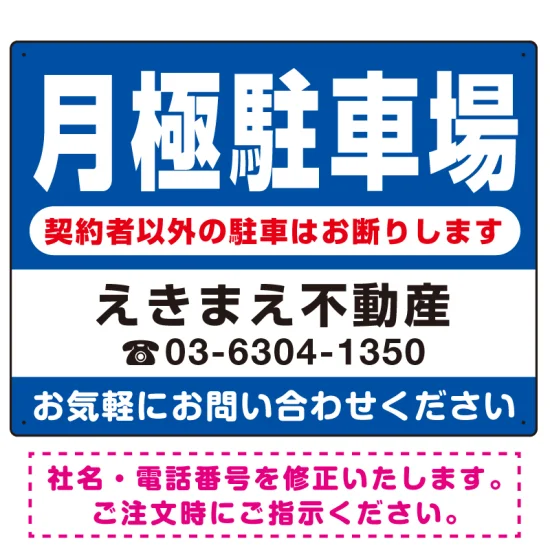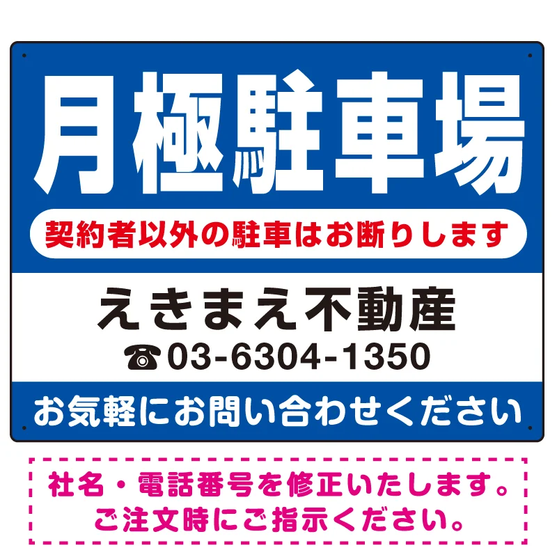 月極駐車場の募集に。社名と電話番号はご希望の内容に変更いたします。