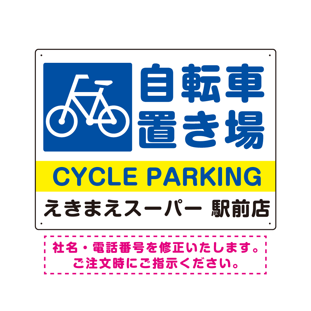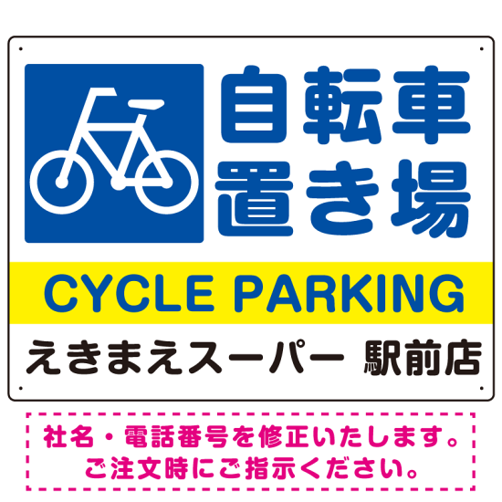 商品説明:自転車置き場 デザインA オリジナル プレート看板 W600×H450 アルミ複合板