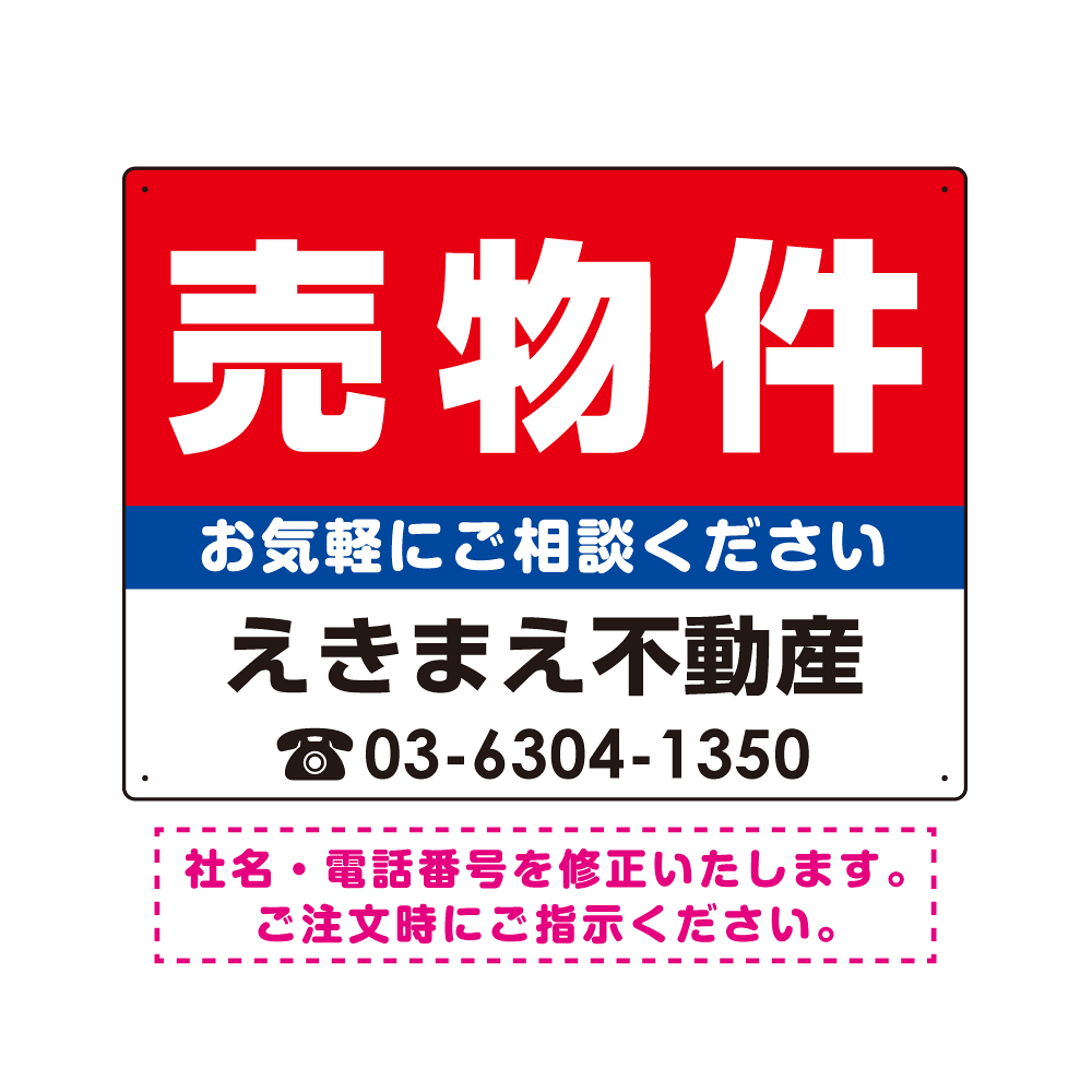 - デザイン上の「社名」と「電話番号」はご希望の内容に修正してから印刷・製作・お届けいたします。