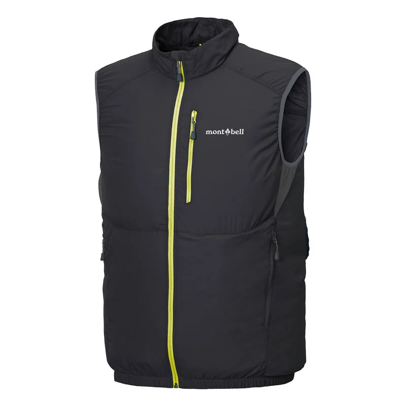 発汗が多い首裏と脇から空気を排出。モンベル製ファンブローライトベスト