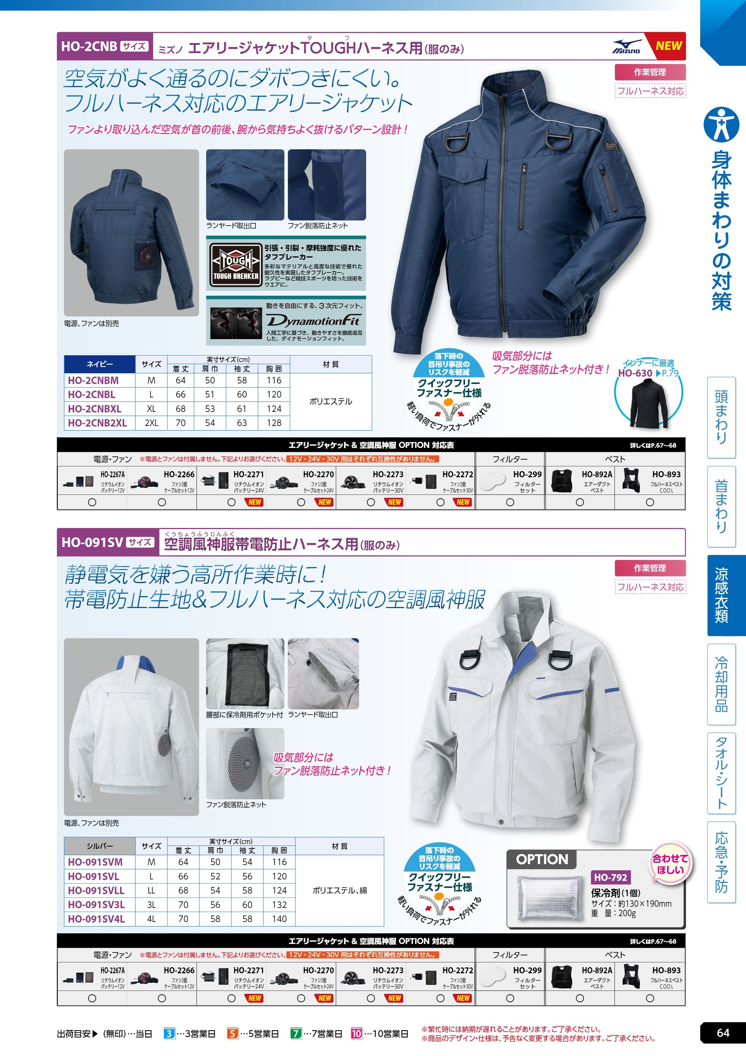 エアリージャケットタフハーネスL服 (HO-2CNBL)は、ユニット 熱中症対策用品カタログ 2026年版(166R) P.64に掲載されています