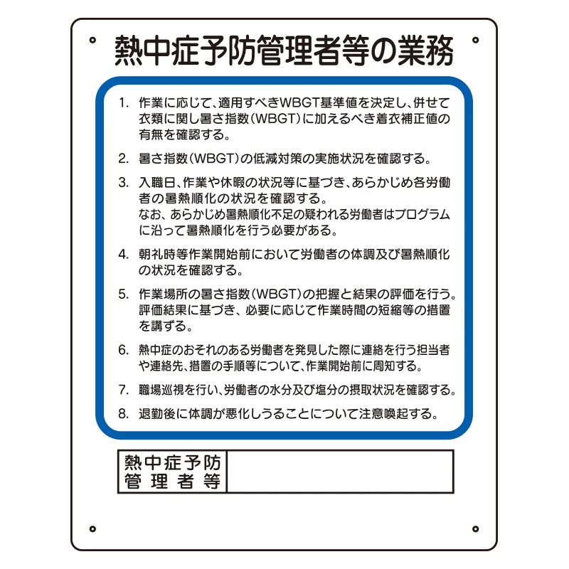 - 作業主任者職務板 熱中症予防管理者 (HO-5131)