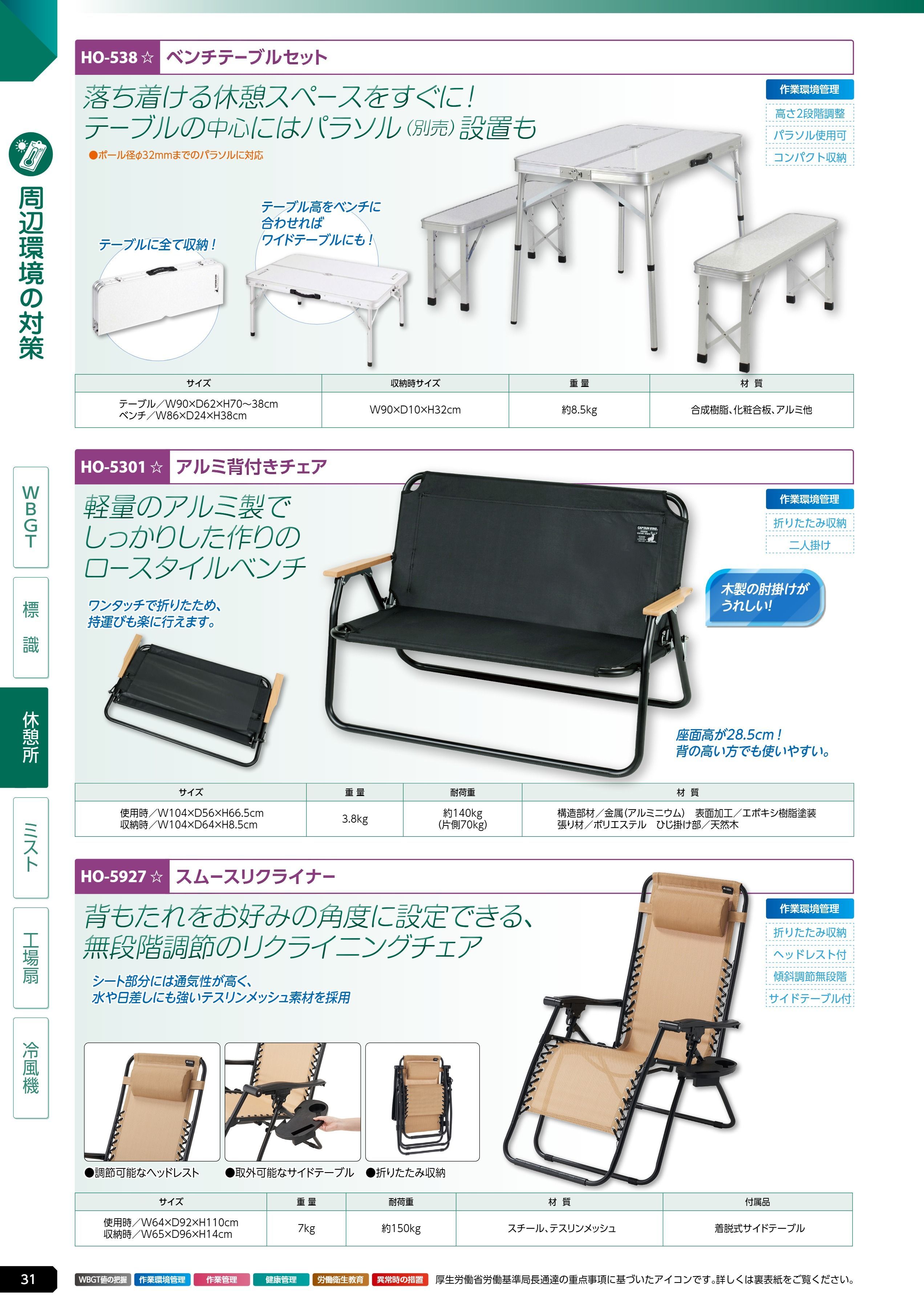 アルミ背付ベンチ (HO-5301)は、ユニット 熱中症対策用品カタログ 2026年版(166R) P.31に掲載されています