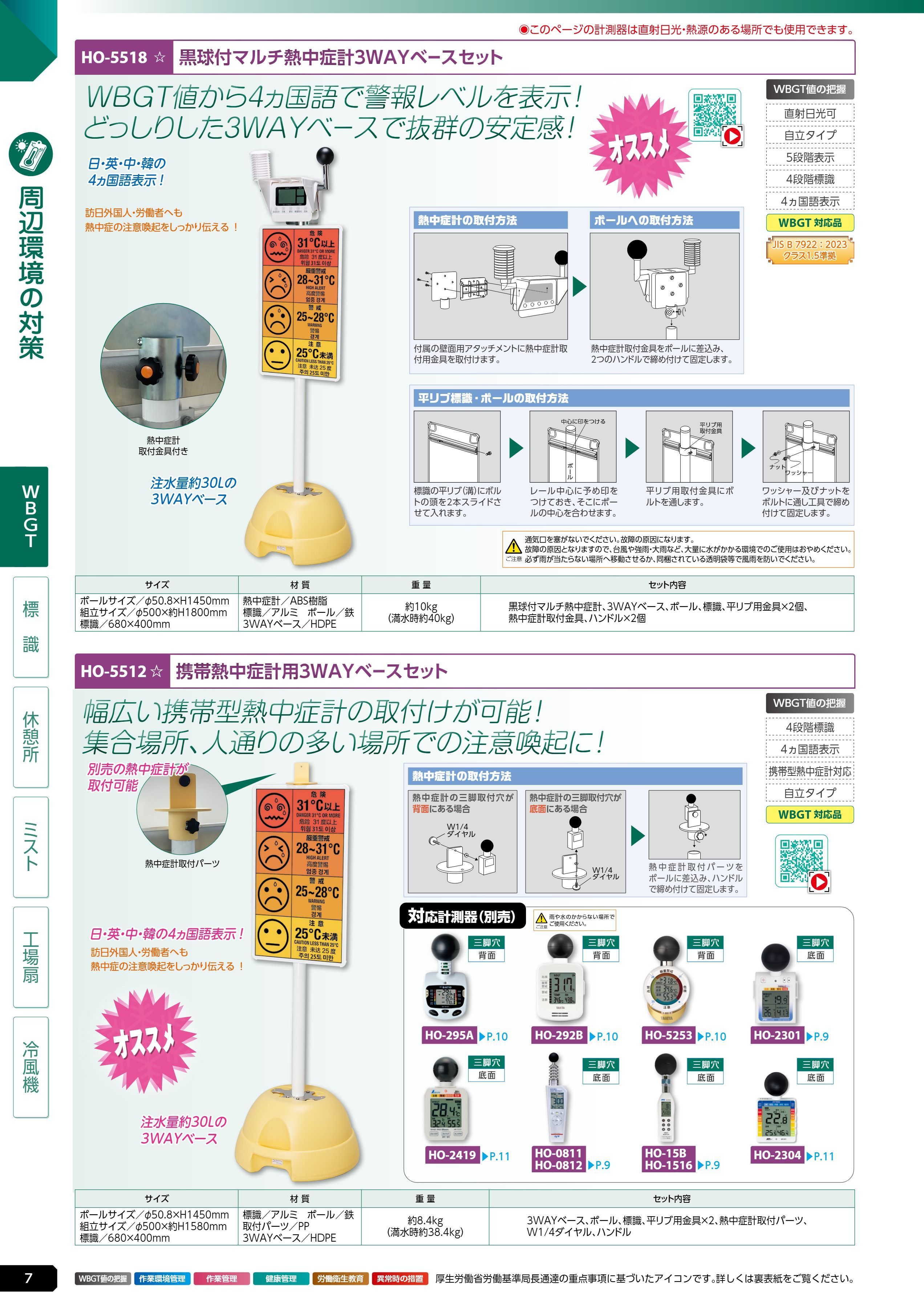 黒球付マルチ熱中症計3WAYベースセット (HO-5518)は、ユニット 熱中症対策用品カタログ 2026年版(166R) P.7に掲載されています
