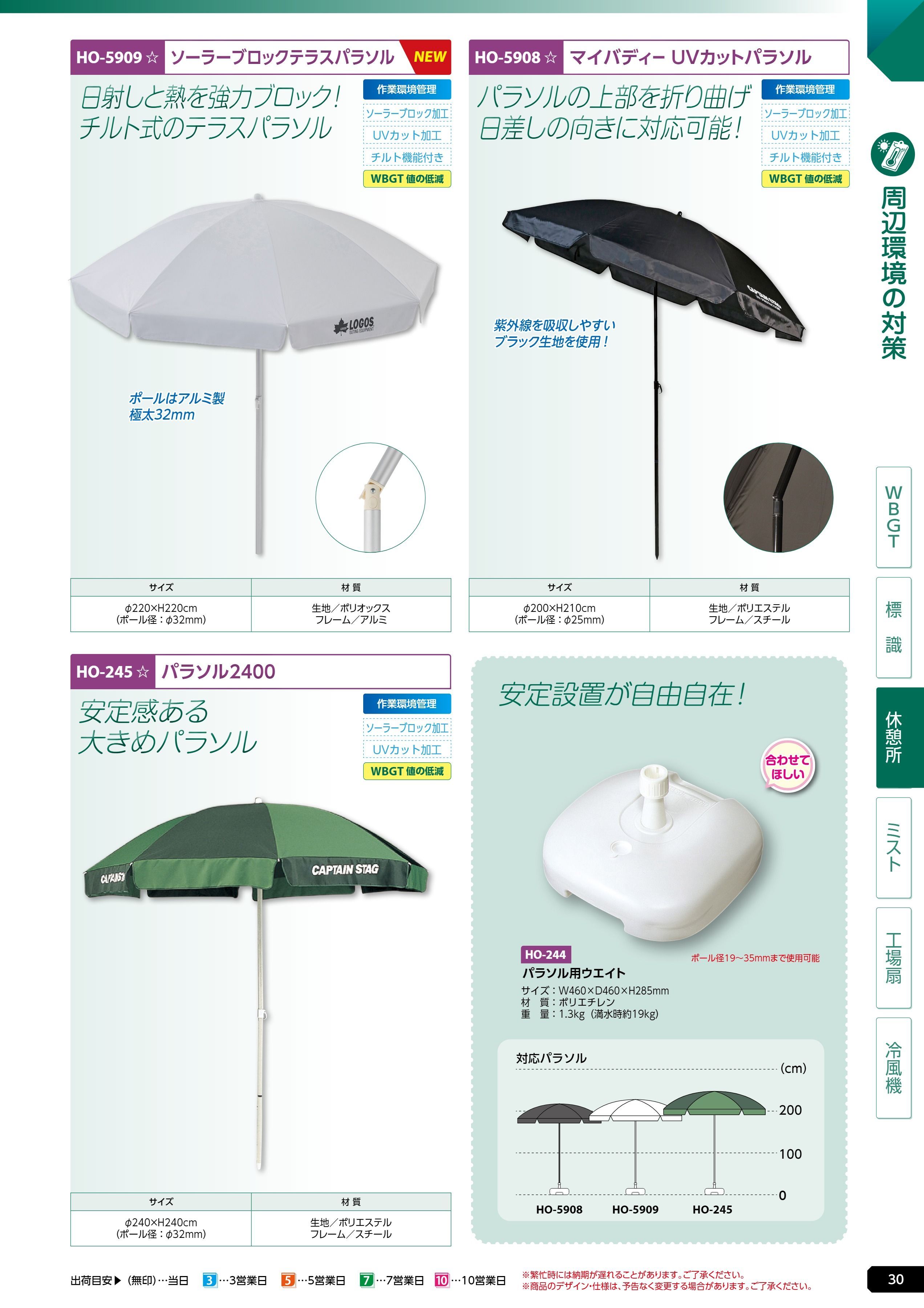 ソーラーブロックテラスパラソル220 (HO-5909)は、ユニット 熱中症対策用品カタログ 2026年版(166R) P.30に掲載されています