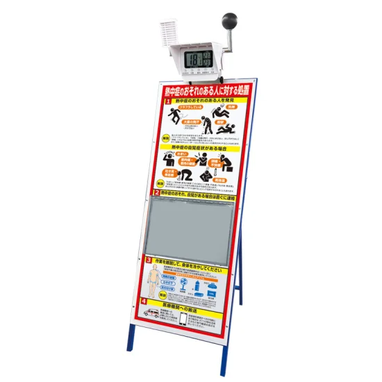 WBGT値と対処フローを1台で掲示。差込式KYボード付き自立看板