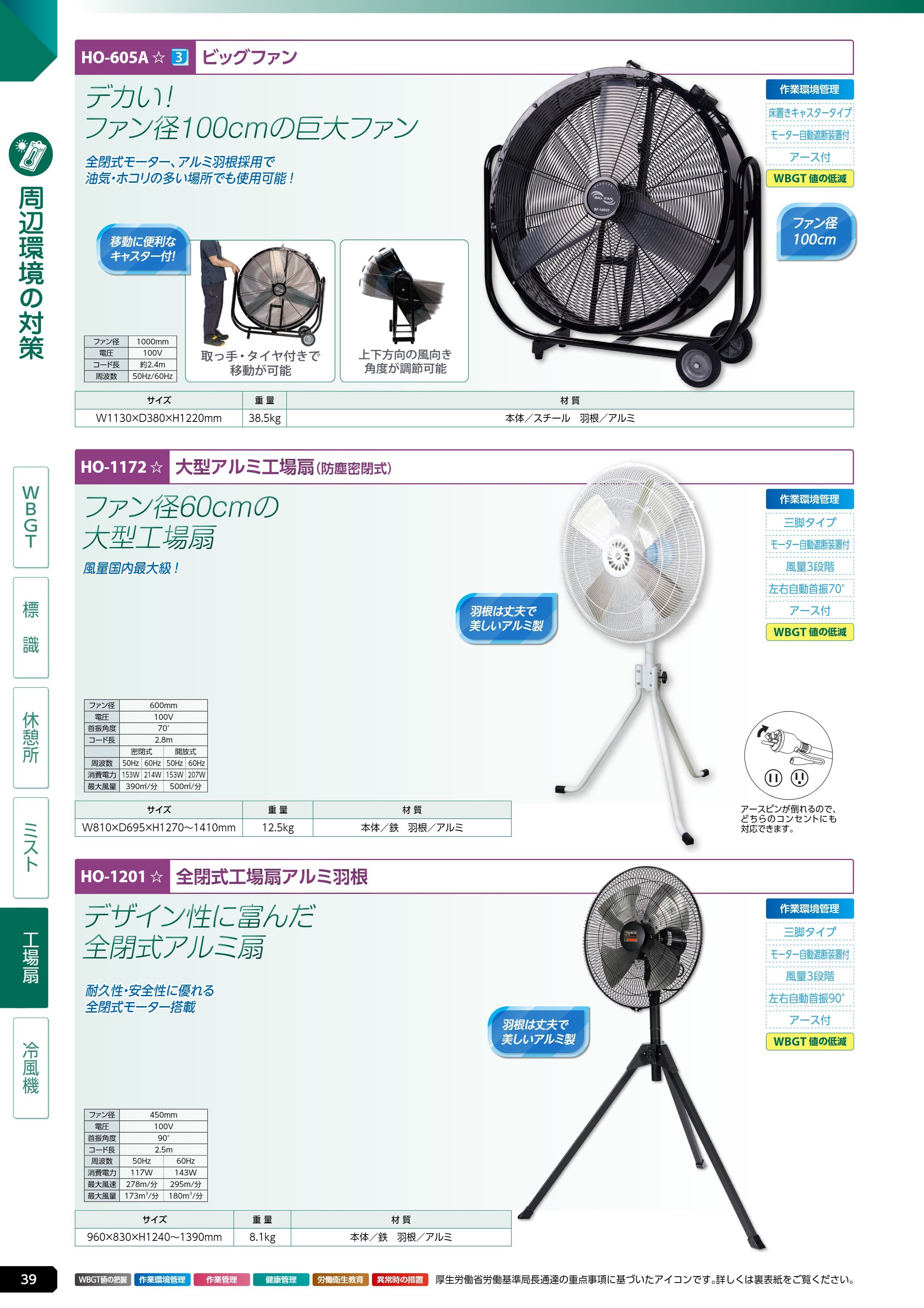 100cmビッグファン (HO-605A)は、ユニット 熱中症対策用品カタログ 2026年版(166R) P.39に掲載されています
