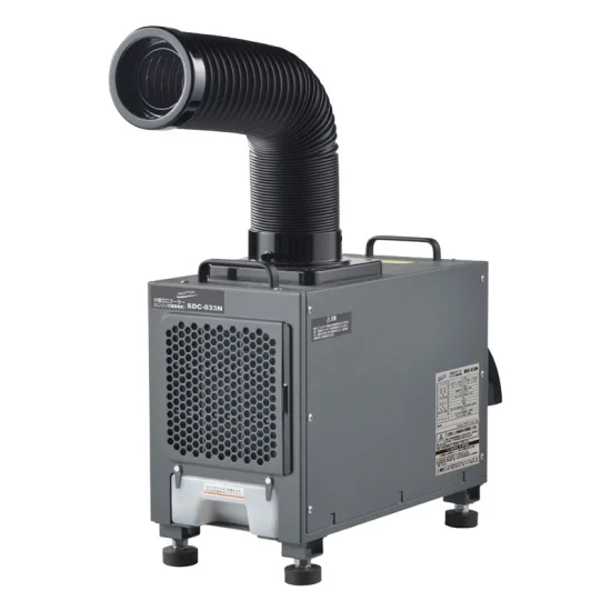 フォークリフトや建機に取付け。伸縮70cm冷風ダクトの小型DCクーラー(48V)