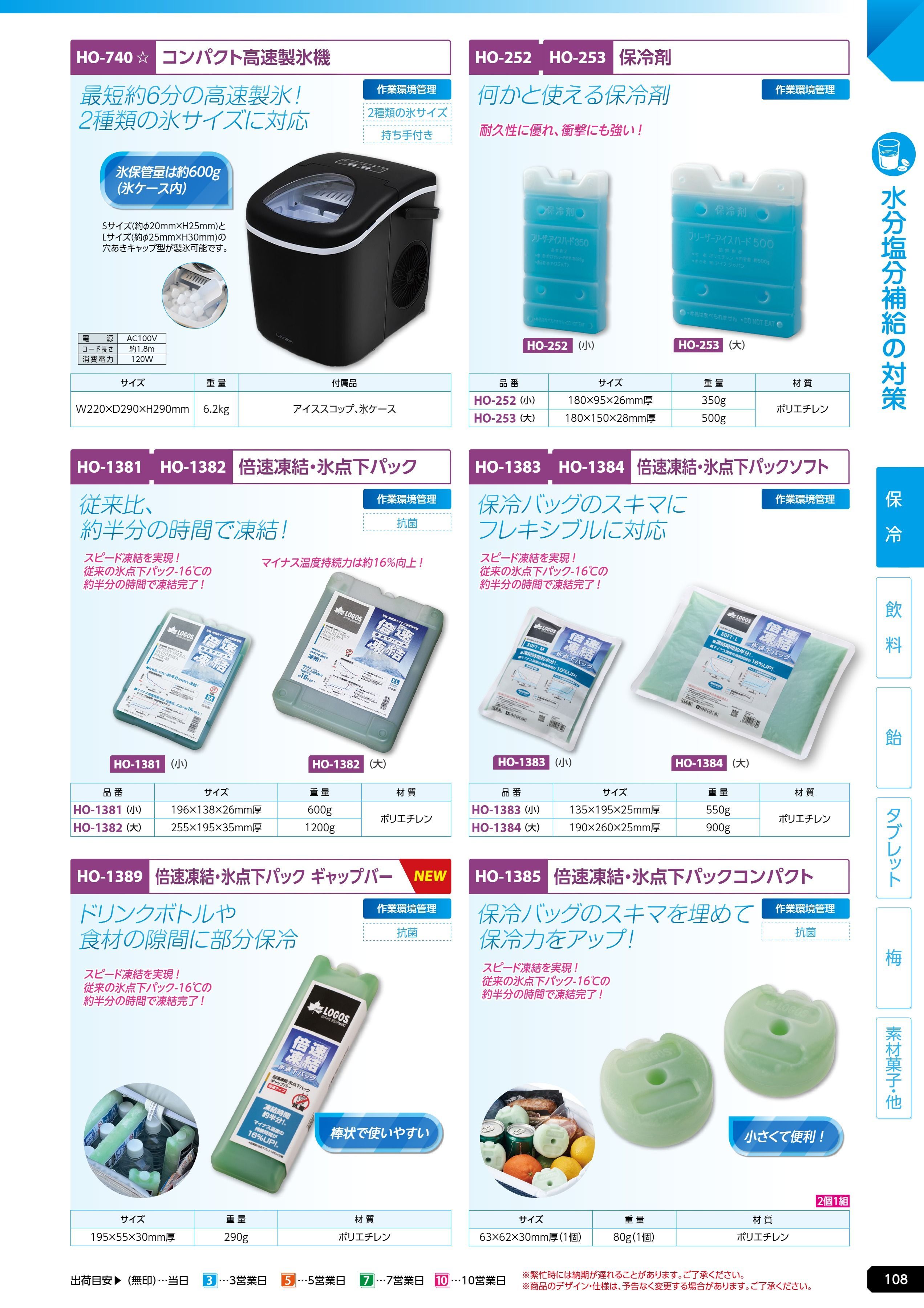 コンパクト高速製氷機 (HO-740)は、ユニット 熱中症対策用品カタログ 2026年版(166R) P.108に掲載されています