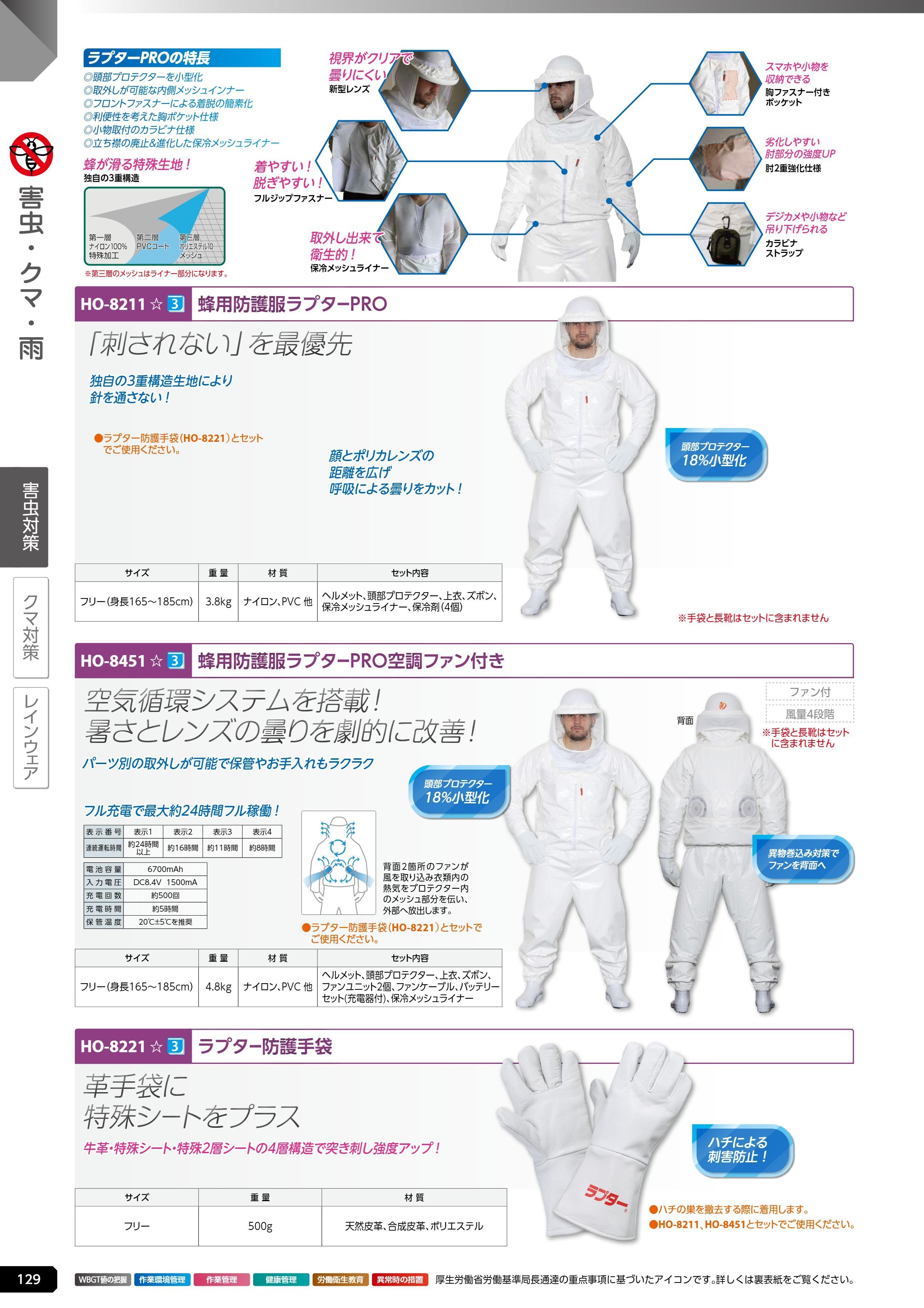 蜂用防護服 ラプター防護手袋 (HO-8221)は、ユニット 熱中症対策用品カタログ 2026年版(166R) P.129に掲載されています