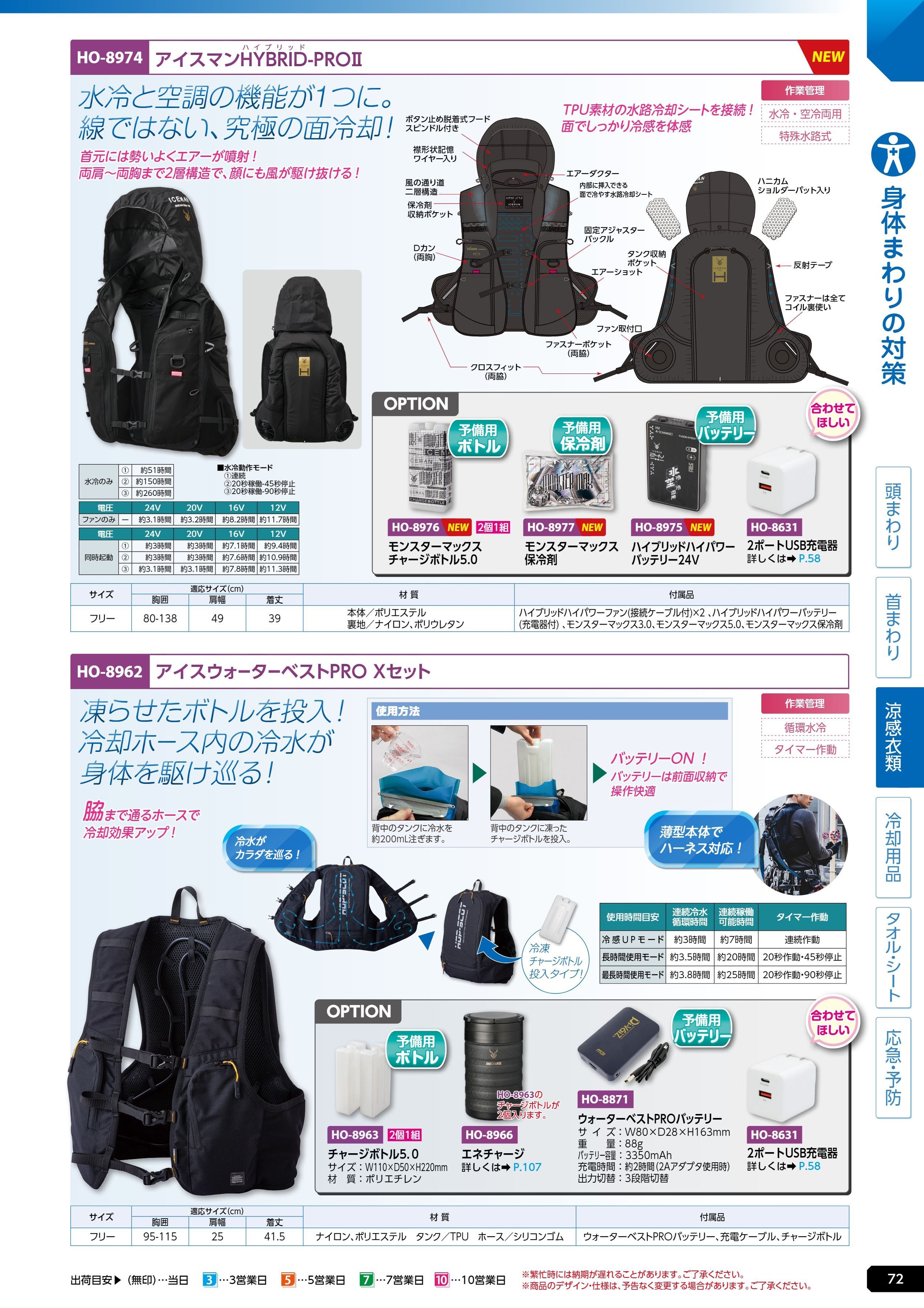 アイスウォーターベストPROバッテリー (HO-8871)は、ユニット 熱中症対策用品カタログ 2026年版(166R) P.72に掲載されています