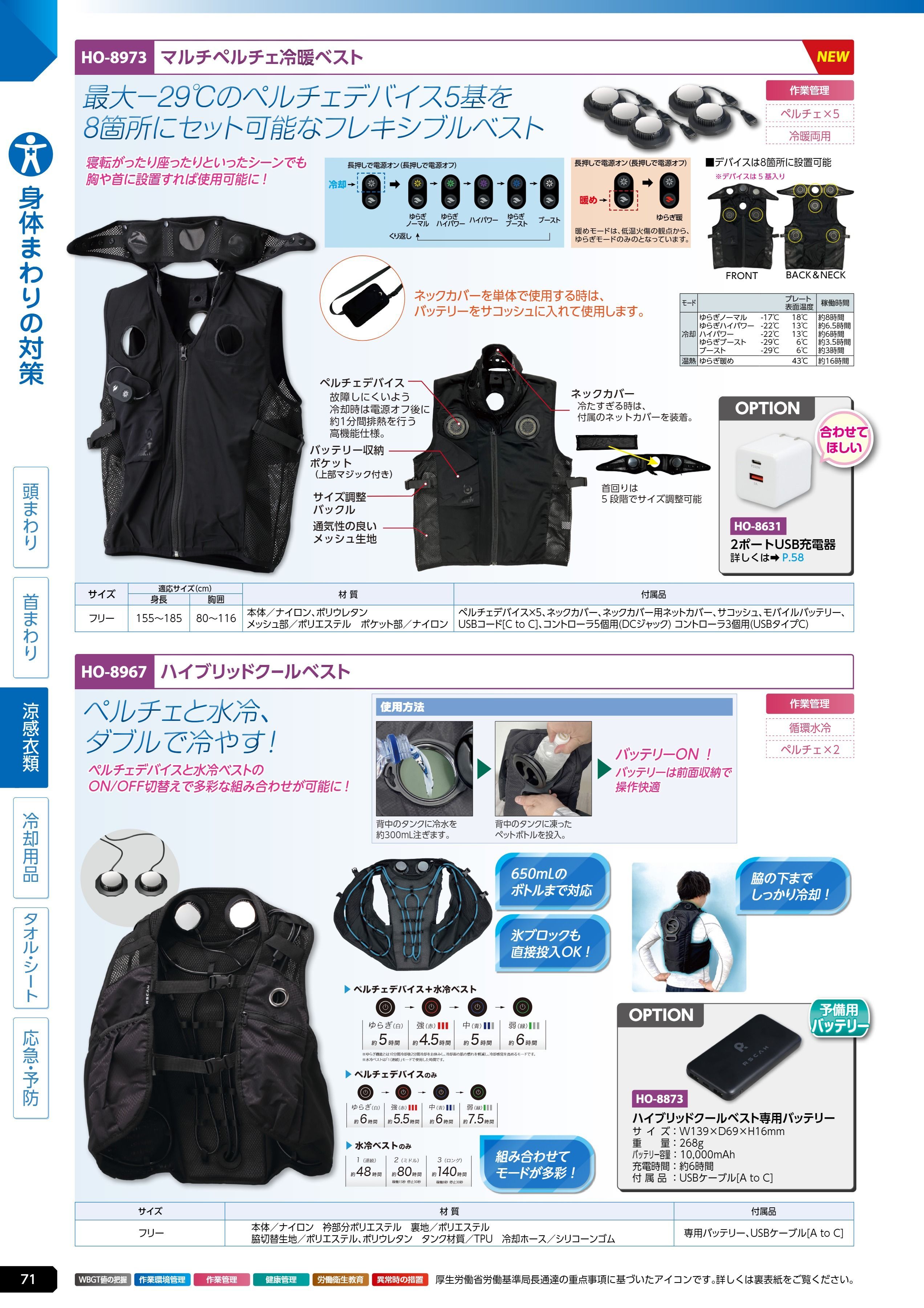 ハイブリッド クールベスト専用バッテリー (HO-8873)は、ユニット 熱中症対策用品カタログ 2026年版(166R) P.71に掲載されています