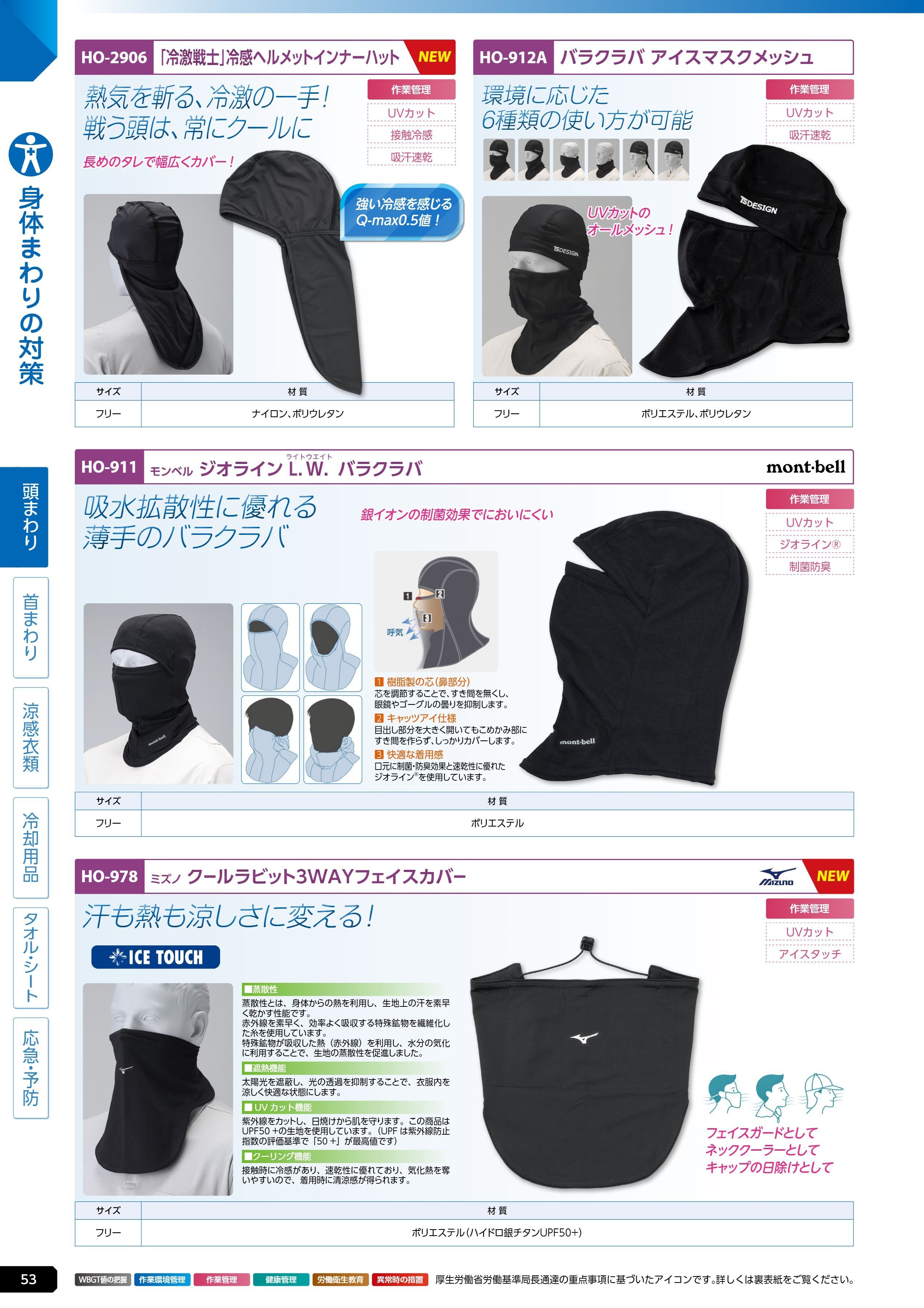 モンベル ジオラインL.W.バラクラバ黒 (HO-911)は、ユニット 熱中症対策用品カタログ 2026年版(166R) P.53に掲載されています