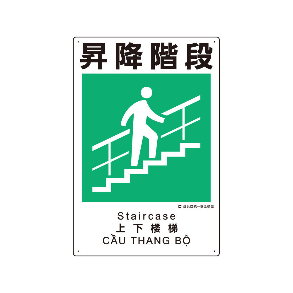 商品説明:建災防統一標識(日・英・中・ベトナム 4ヶ国語) 昇降階段 (363-20A)