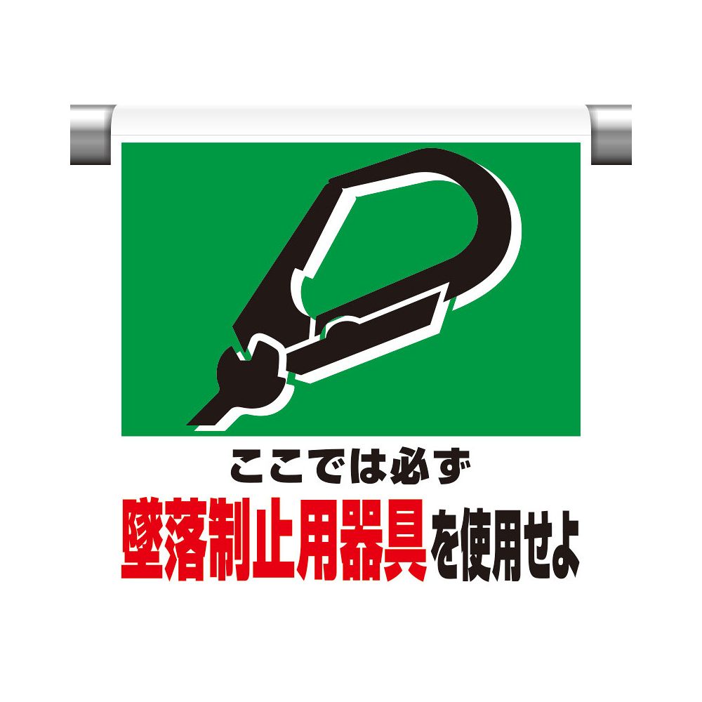 商品説明:ワンタッチ取付標識 ここでは必ず墜落制止用器具を使用せよ