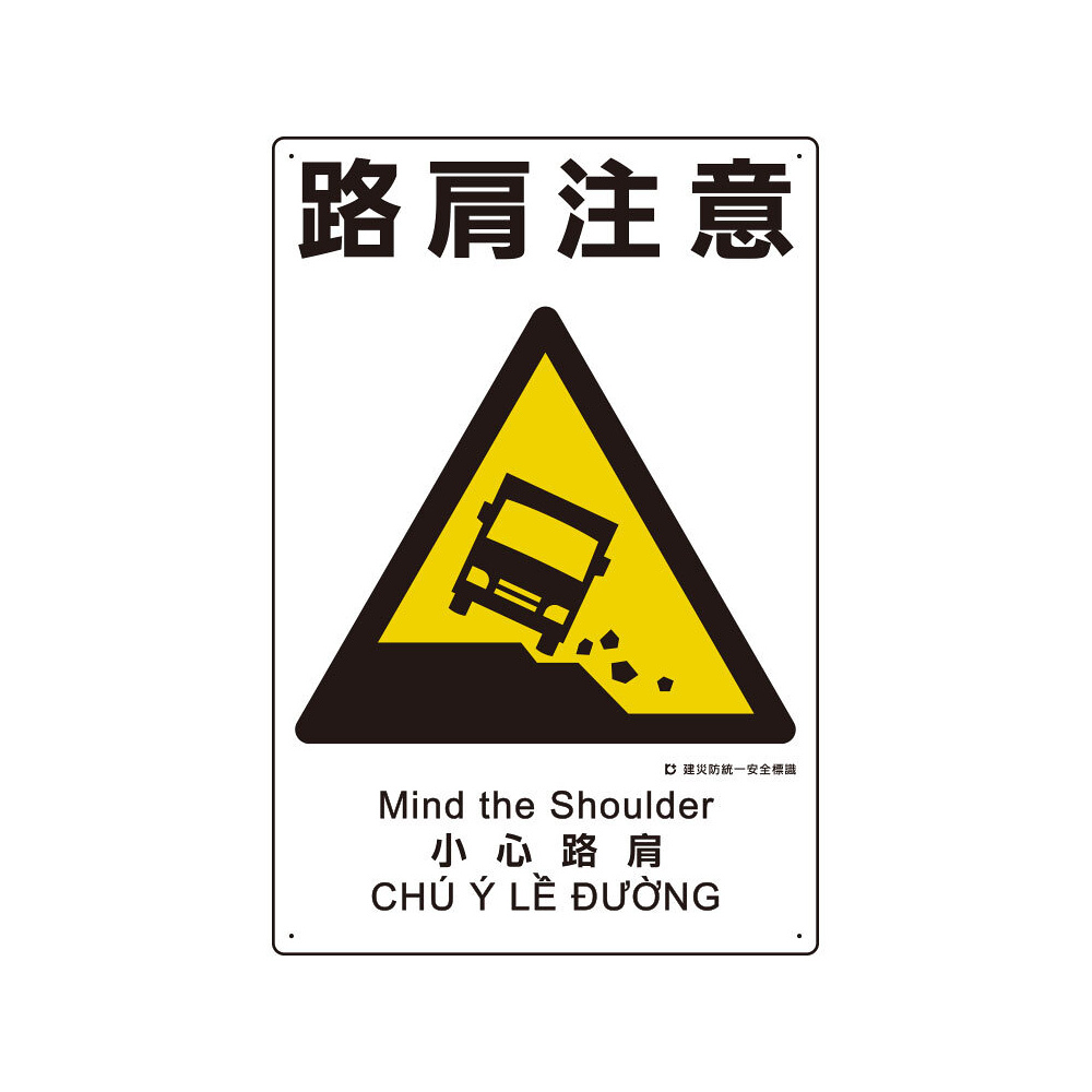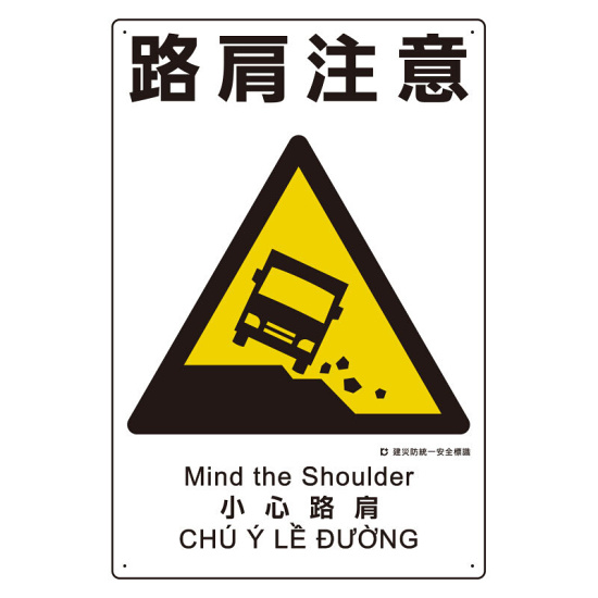 建災防統一標識(日・英・中・ベトナム 4ヶ国語) 路肩注意 (363-22A)