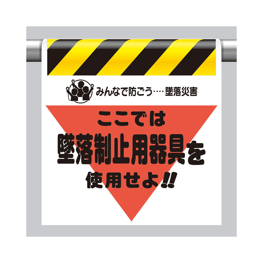 商品説明:ワンタッチ取付標識 ここでは墜落制止用器具を使用せよ!!