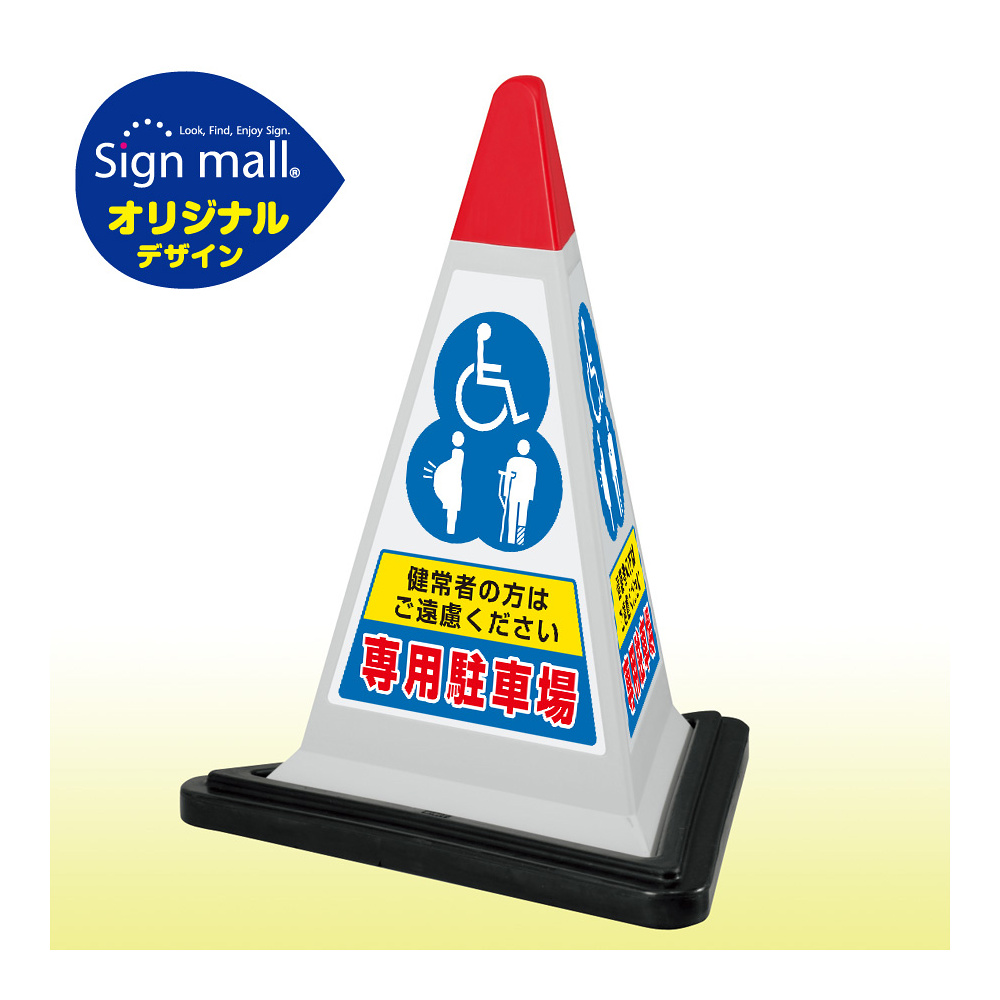 身障者や妊婦や怪我人などの専用駐車スペースの表示に!小型ながら3面表示でしっかりアピール。