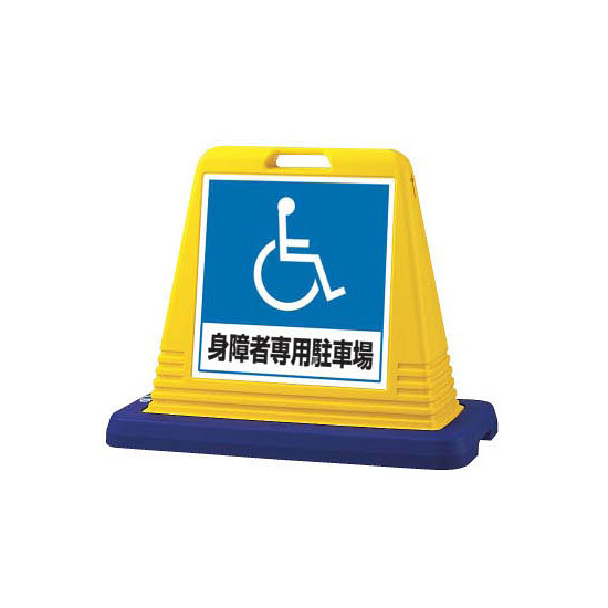 商品説明:サインキューブ 身障者専用駐車場 イエロー 両面表示 (874-182A)