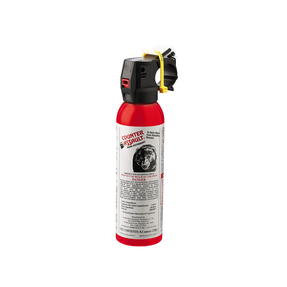 - 世界で初めて熊撃退の目的で開発・商品化された、カプサイシンを成分に用いた熊スプレー。