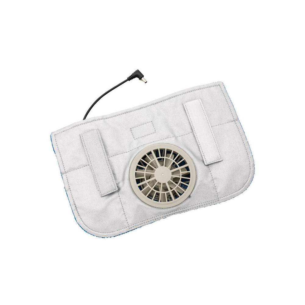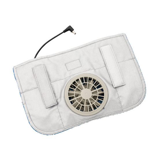 - ヘルメットに装着するだけで大量の外気を後部から首すじに送風できます。