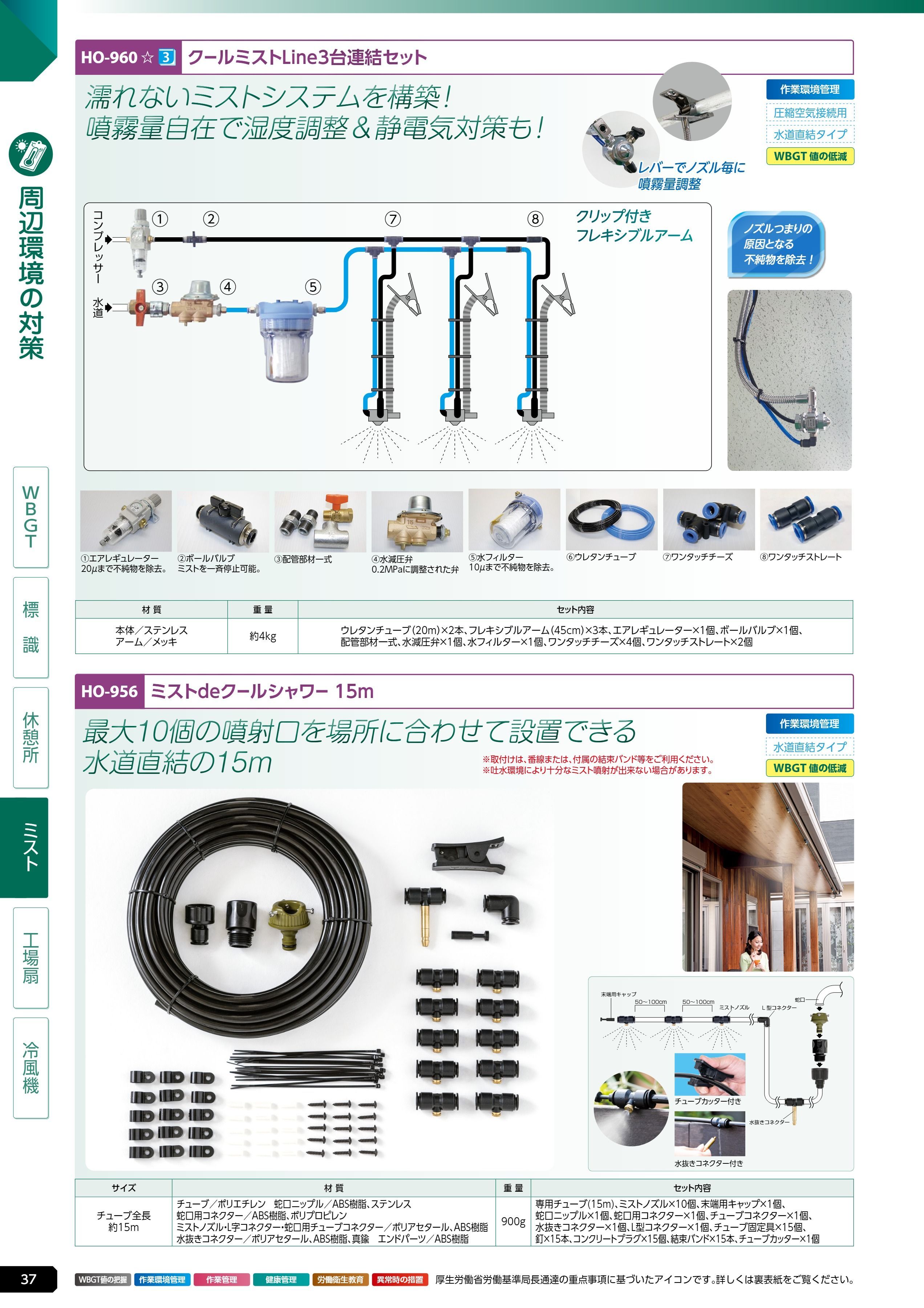 クールミストLine 3台連結セット (HO-960)は、ユニット 熱中症対策用品カタログ 2026年版(166R) P.37に掲載されています