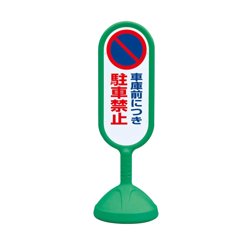 - 車の出入りを妨げたくない場所で内容を伝えやすく、片面表示・両面表示や本体色の違いから現場に合わせて選びやすい仕様です。