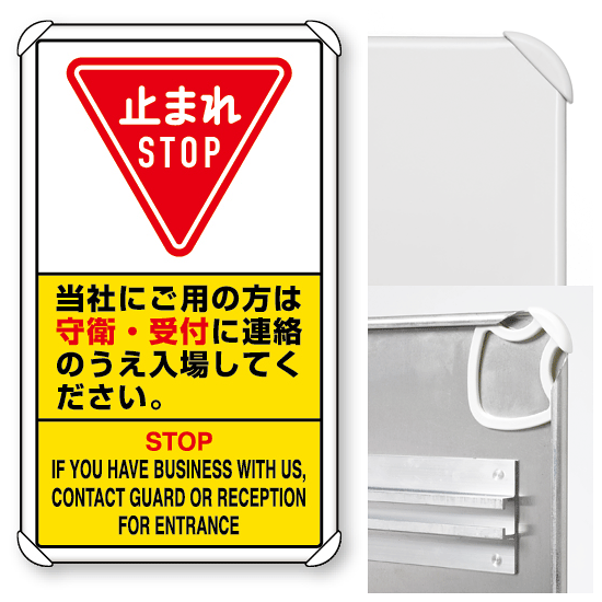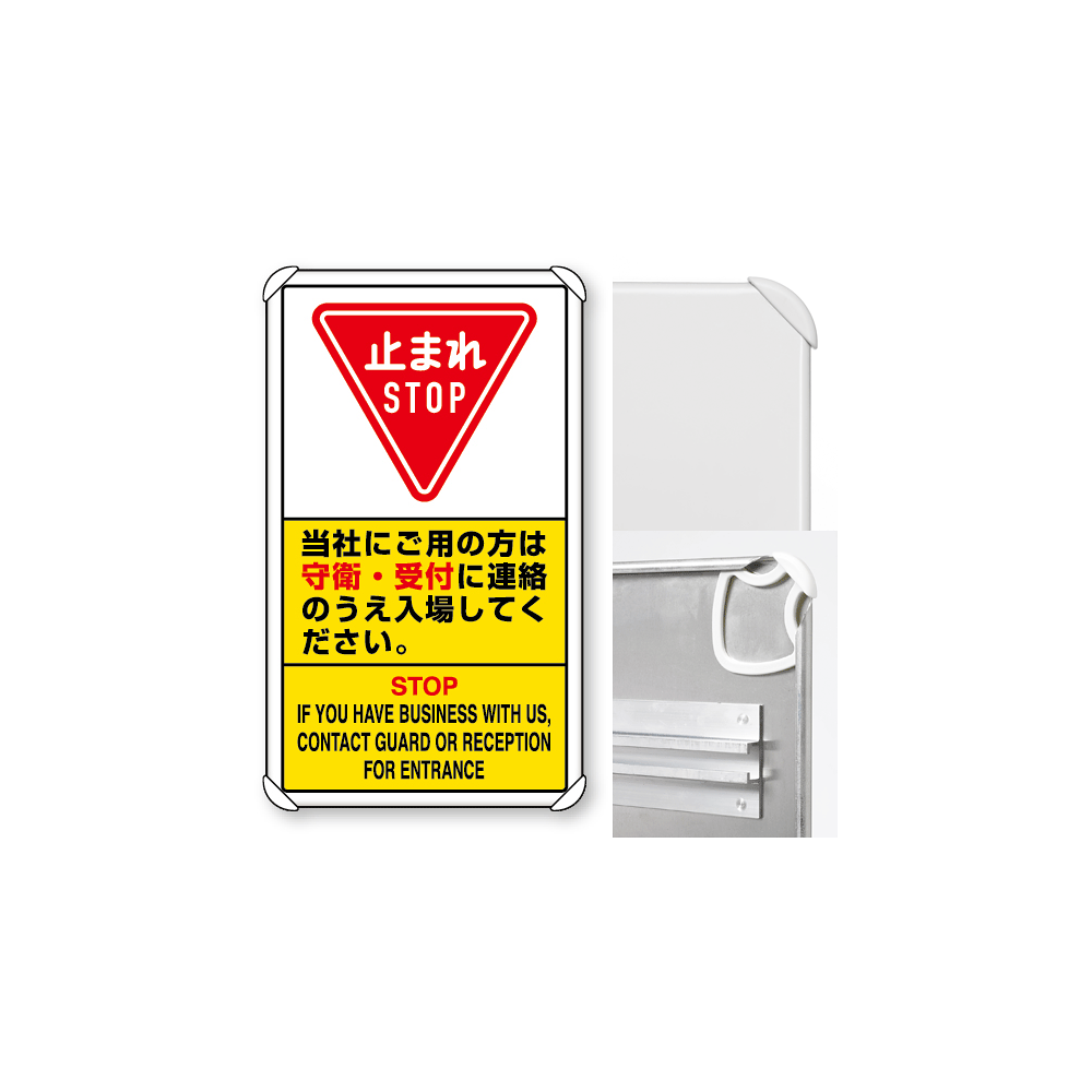 - 当社にご用の方は守衛・受付に連絡・・ (3WAY向き) 構内標識 アルミ 680×400 (833-04D)※標識のみ