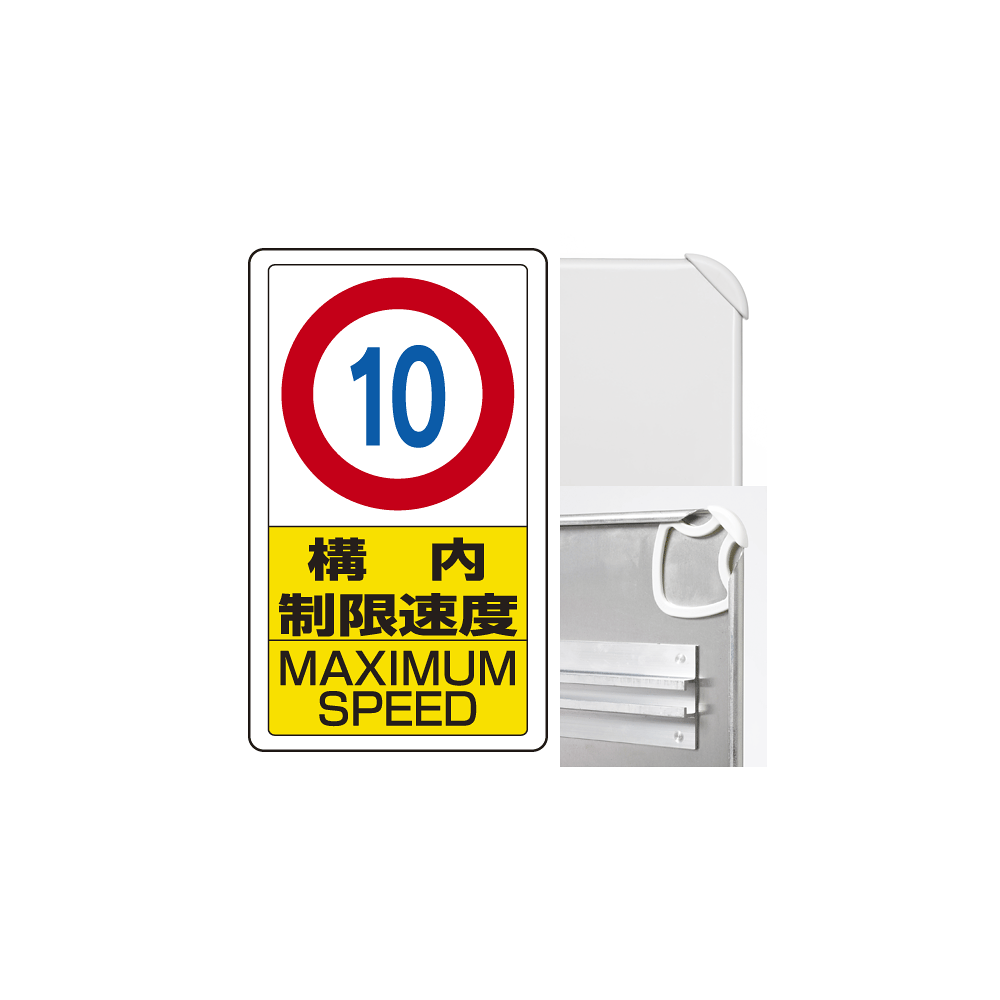 商品説明:構内標識構内制限速度10 (3WAY向き) 構内標識 アルミ 680×400 (833-10B)※標識のみ