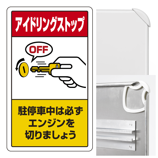 - アイドリングストップ駐停車中は必ず (3WAY向き) 構内標識 アルミ 680×400 (833-23B)※標識のみ
