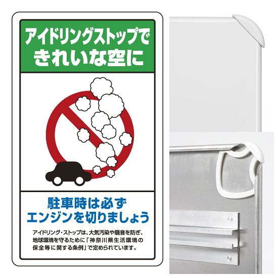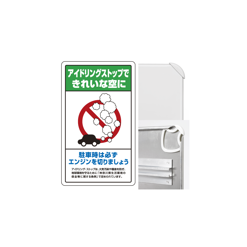 アイドリングストップ神奈川県版 (3WAY向き) 構内標識 アルミ 680×400 (833-24B)※標識のみを実際にご利用いただいたお客様の声や、使用感に関するレビュー・評価をご紹介しています。