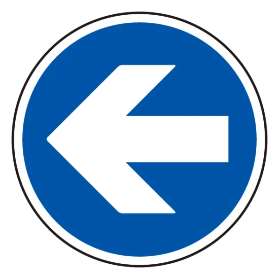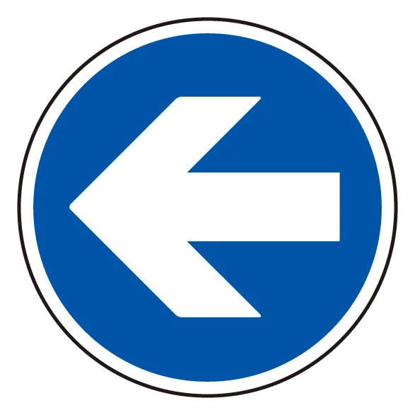 進行方向を左へ分かりやすく示せる丸型上部標識。