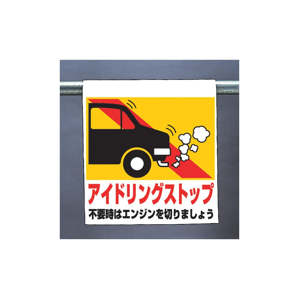 商品説明:ワンタッチ取付標識 アイドリングストップ 341-28
