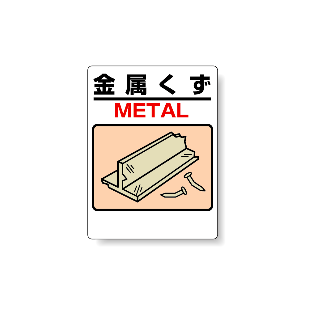 標識 金属くず 339-04Aのスペック - サイズ:600×450×1mm厚 材質:エコユニボード(4.2mmφ穴4スミ)